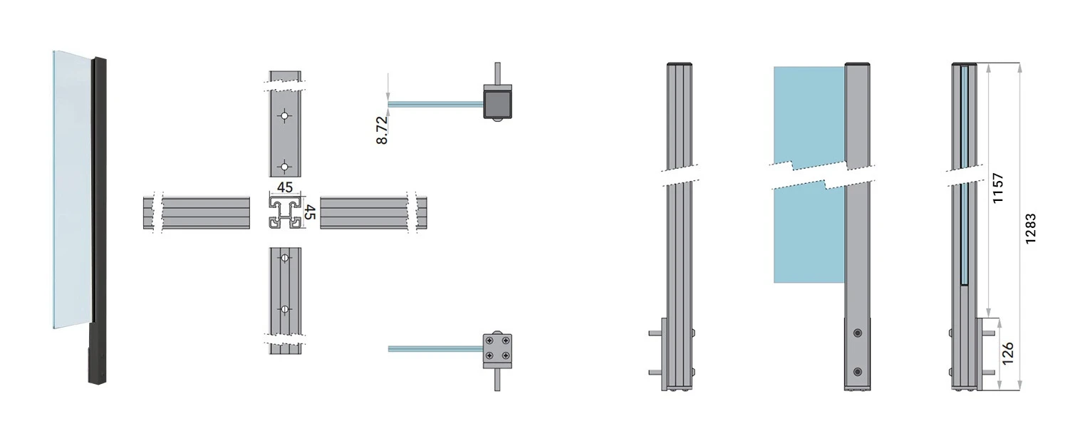 - Stolpe (aluminiumsprofil med sidemontering)