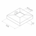 Dækpladen er beregnet til gelændersystemer baseret på firkantede profiler 40×40 mm. Den er ideel til glasgelændere monteret til underlaget via firkantede stolper — dækker overgangen hvor stolpen passerer gennem gulv eller trapetrin. Montering sker ved at trække dækningen på profilen før endelig fastgørelse, og derefter sænke den ned på monteringsfladen.