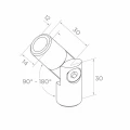 Drejevinkel 90°–180° er en gelændersamling beregnet til holdbar og æstetisk samling af stænger eller håndlister med diameter Ø 12 mm. Takket være det justerbare led med område 90° til 180° muliggør den præcis tilpasning af vinklen i hjørner af altan-, terrasse- og trappegelandre — uden behov for tilskæring og svejsning af elementer på byggepladsen.