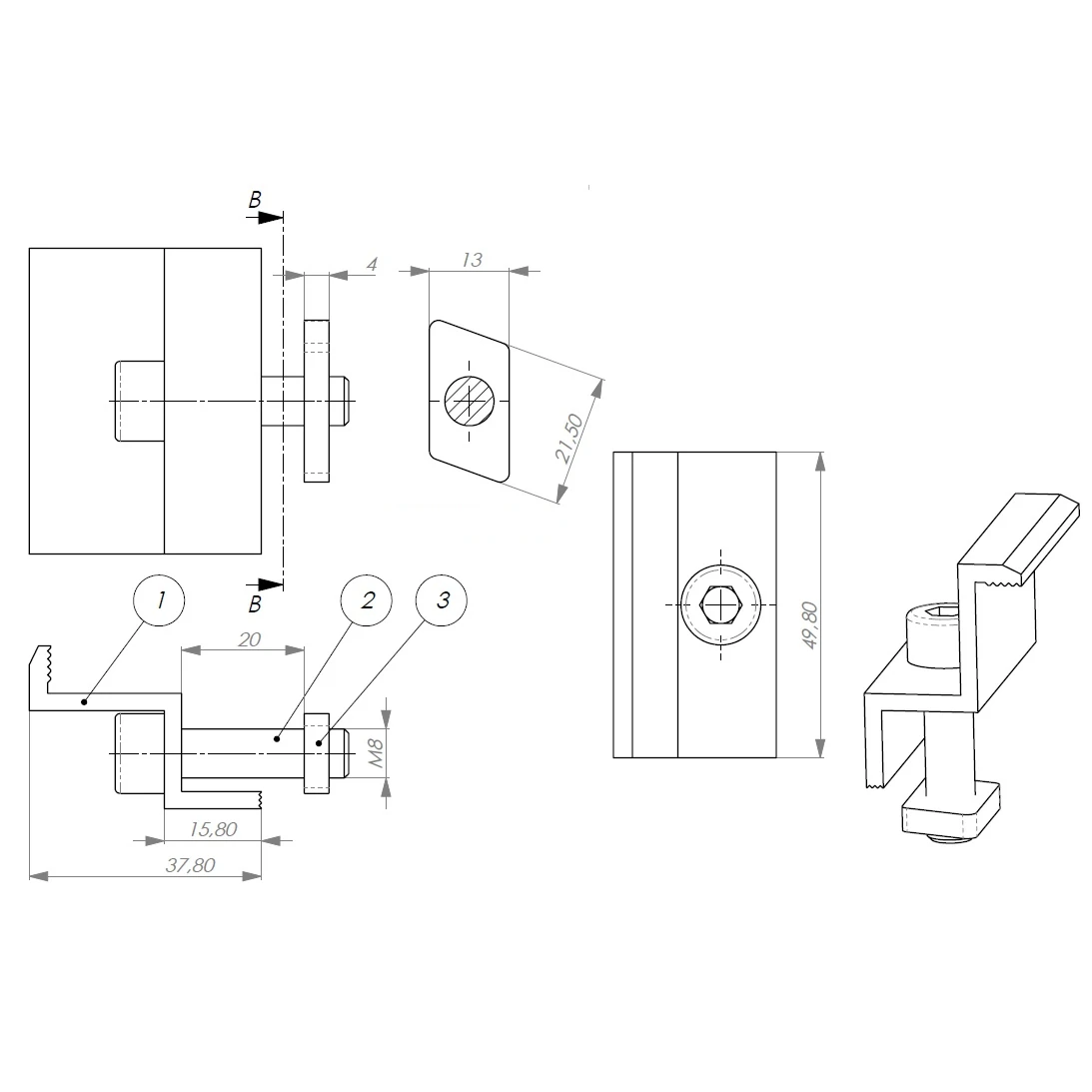 Sidetryksklemmen er fremstillet af 6060 aluminium og kombinerer styrke, korrosionsbestandighed og god svejsbarhed. Legeringen er meget udbredt på grund af sin fremragende duktilitet og er særligt velegnet til anodisering, en proces, der forstærker materialets naturlige beskyttende oxidlag. Resultatet er en holdbar letvægtsklemme, der bidrager til systemets levetid og er modstandsdygtig over for en række forskellige miljøforhold.