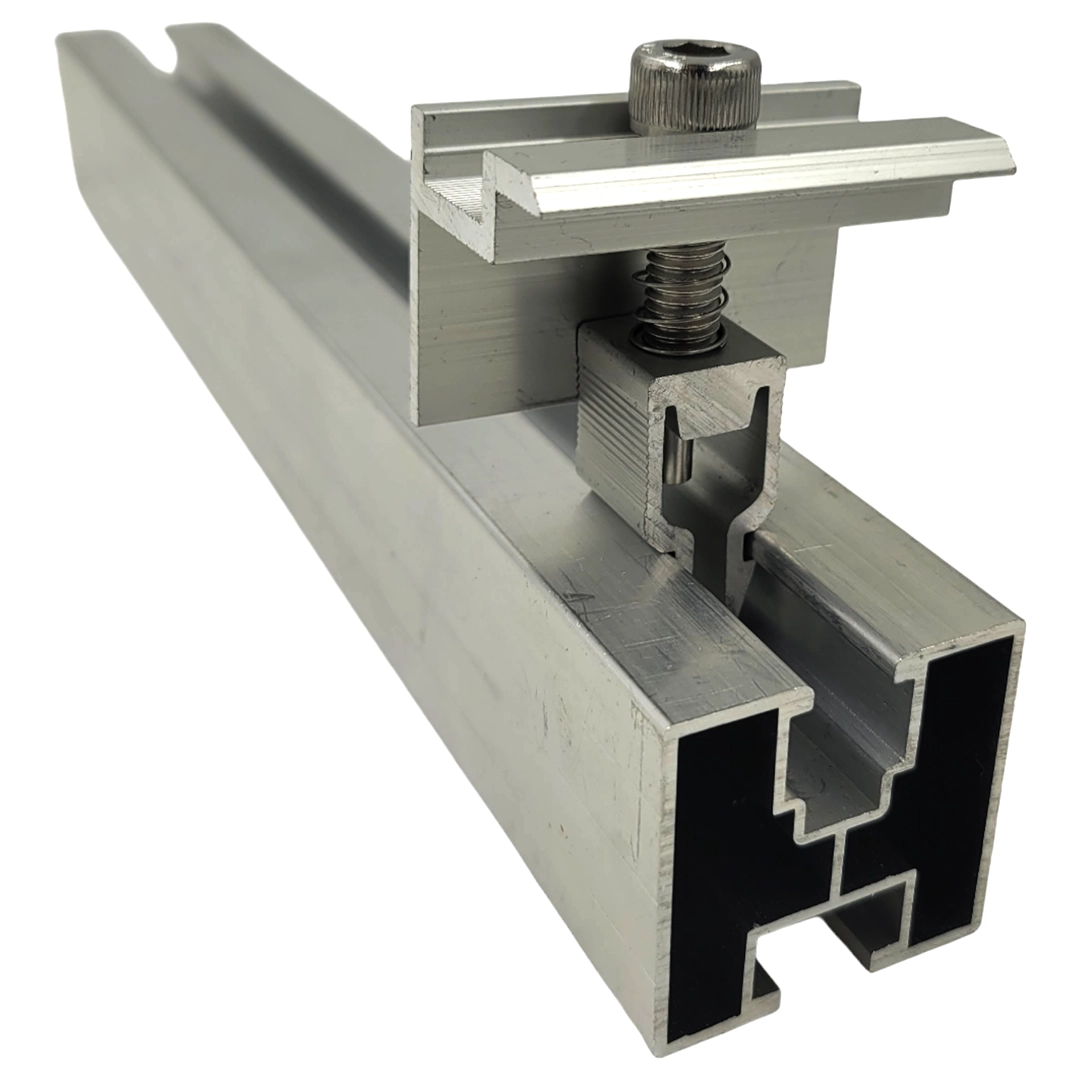Centerklemmen med klik og skrue er en integreret del af solcelleinstallationen. Centerklemmen er en monteringskomponent til solcelleinstallationer og bruges til at fastgøre solcellepanelet til den strukturelle aluminiumsprofil. Den bruges til montering af solcellepaneler på både flade og skrå tage.