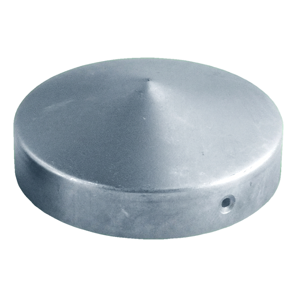 Rund galvaniseret stålhætte beregnet til påsætning på hegnsstolper med diameter Fi 42 mm. Beskytter effektivt stolpens øverste del mod skadelig påvirkning fra vejrforhold — regn, sne og fugt — og forlænger hegnslevetiden. Takket være den galvaniserede belægning er elementet korrosionsbestandigt og kræver ikke yderligere maling umiddelbart efter montering.