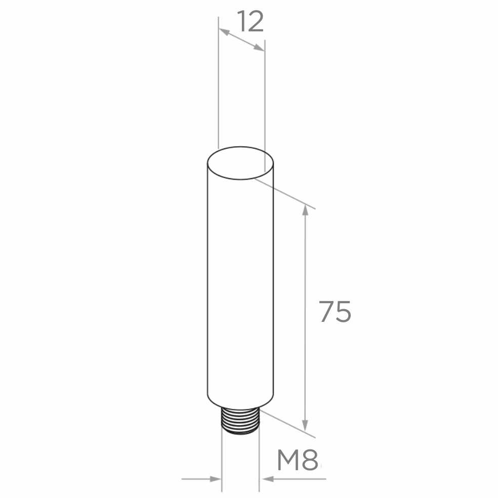 Gelænderstøttestang Ø12×75 mm med M8 gevind – rustfrit stål AISI 304 satin