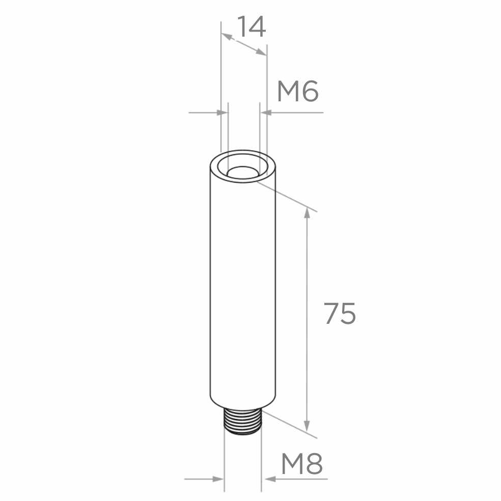 Gelænderstøttestang fi 14×75 mm AISI 304 – gevind M8/M6, satineret