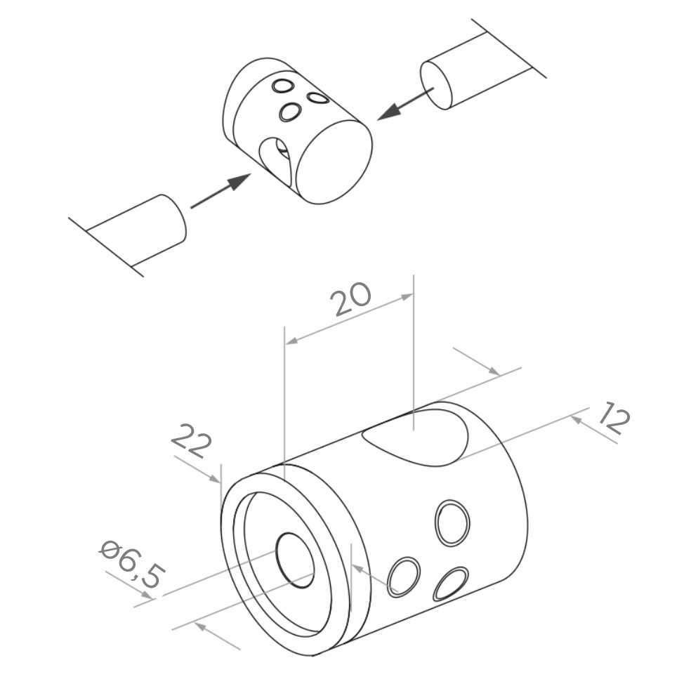 Gennemføringsholder til forbindelse af stænger med diameter 12 mm til bærerør med diameter 42,4 mm. Sikrer stabilitet og nødvendig stivhed i hele gelænderkonstruktionen. Fremstillet i holdbart rustfrit stål AISI 304 med satin finish, garanterer æstetisk udseende og langvarig korrosionsbestandighed — ideelt element til professionelle gelænderinstallationer indendørs og udendørs.