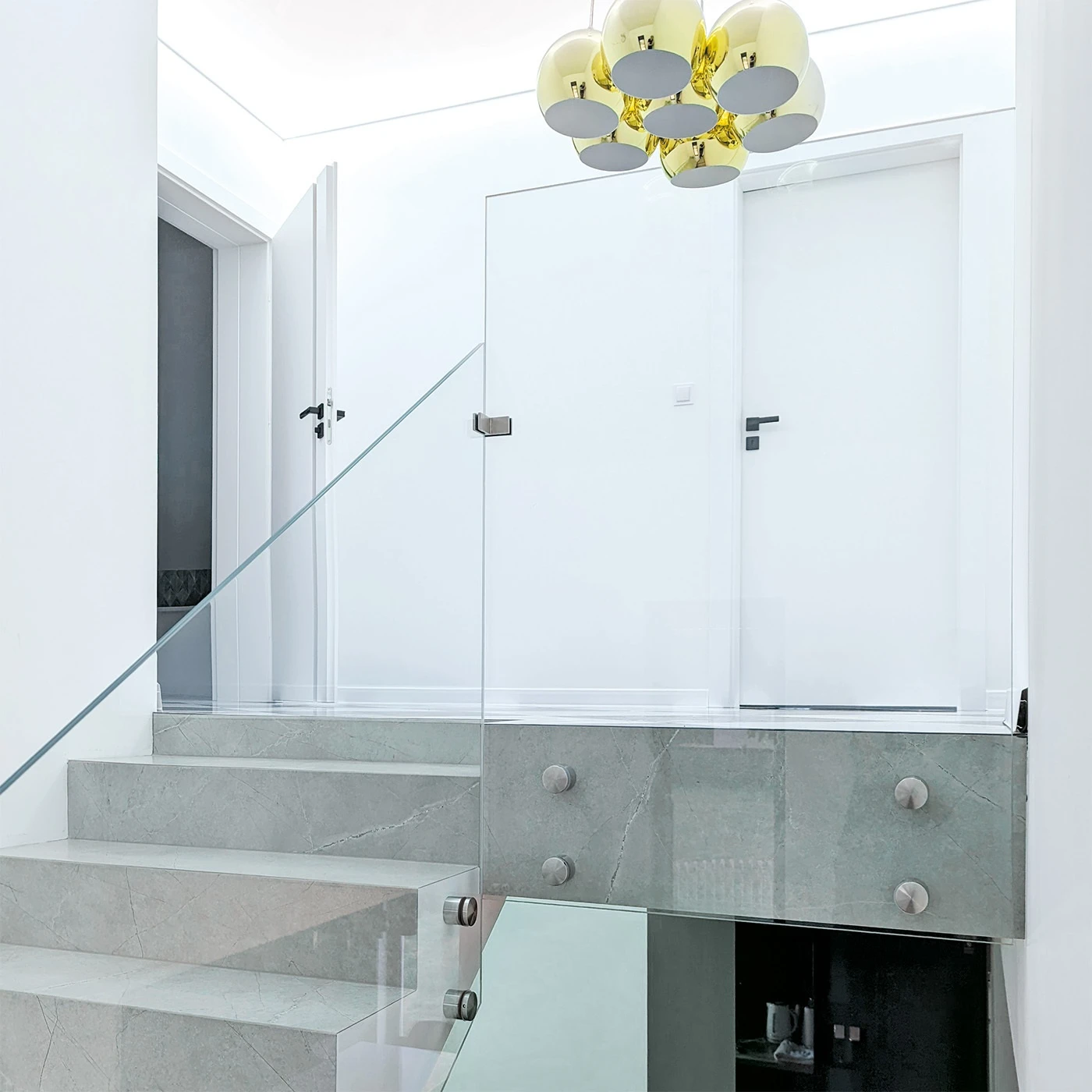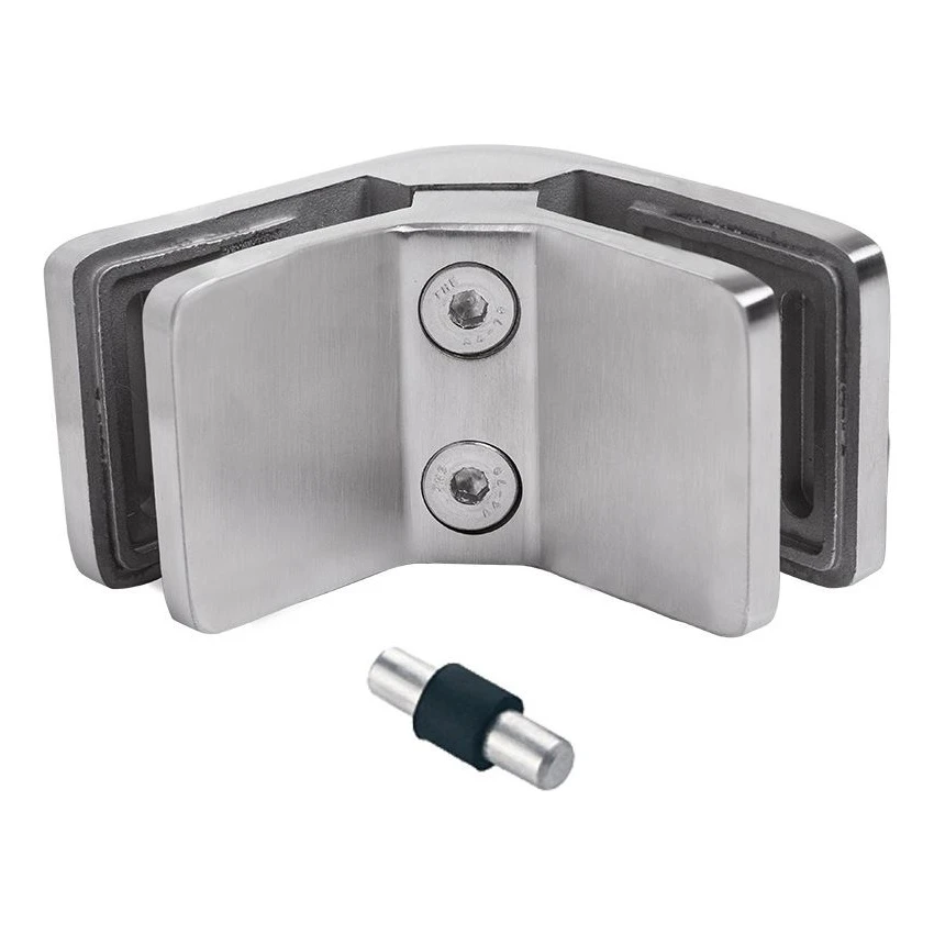 Hjørnebeslag til glas 90° i kvadratisk udførelse — en pålidelig samling af to plader hærdet eller lamineret glas i en ret vinkel. Fremstillet i rustfrit stål AISI 304 med satineret overflade er beslaget velegnet til altangelændere, terrassegelændere samt indvendige glaskonstruktioner. Sættet indeholder en sikringspin, der forhindrer utilsigtet udskridning af glaspladen fra beslaget.