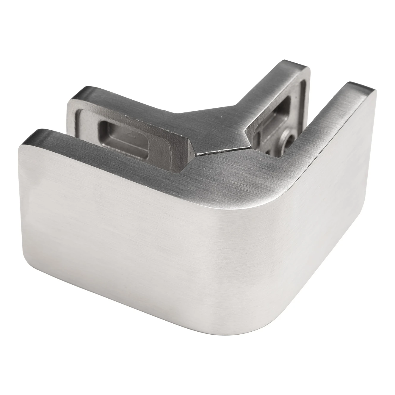 Hjørnebeslag til glas 90° kvadratisk AISI 304 satineret 72×45 mm