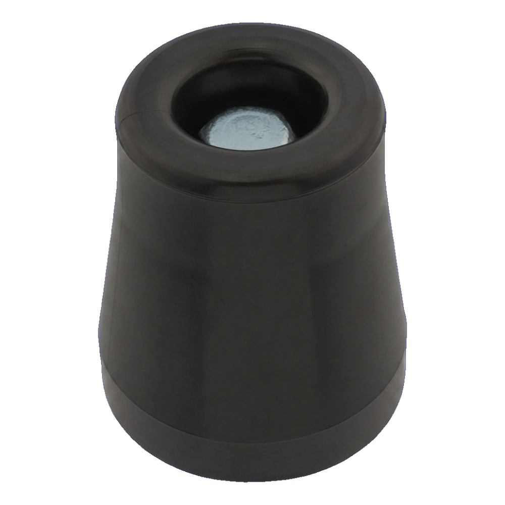 Gummi dørstop i sort farve — effektiv og holdbar beskyttelse af døre og vægge mod mekaniske skader. Konisk form og høj gummikvalitet garanterer sikker støddæmpning, og montering med plugskrue til underlag tager kun et øjeblik.