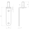 Hængseltap beregnet til fløjporte og låger. Element monteres ved skruemontering til stolpe eller portramme ved hjælp af to kvadratiske huller på 10,4 mm. Vinkelkonstruktion med massiv monteringsplade og tap med diameter 18 mm sikrer holdbar og stabil ophængning af portfløjen.