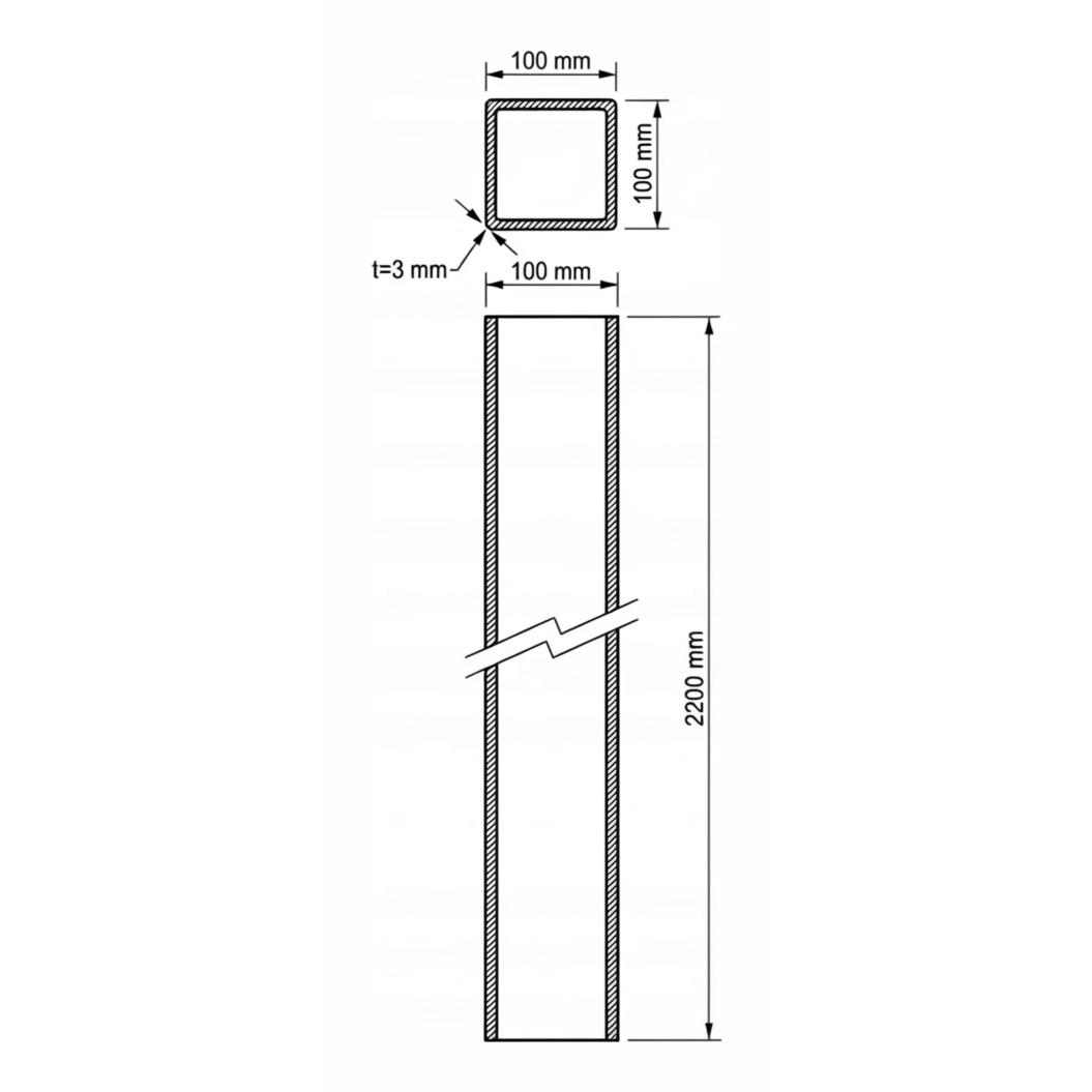 Stolpen 100×100×3 mm er en forstærket version til krævende realiseringer, hvor både konstruktionens soliditet og æstetiske finish tæller. Den fungerer ideelt som element i palisade- og panelhegn omkring private grunde, kommercielle objekter og industriområder.