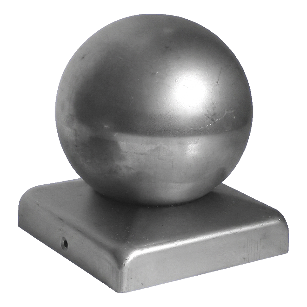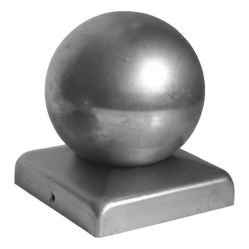 Hegnsafslutning i stål med dekorativ kugle beregnet til montering på stolper med tværsnit 60×60 mm. Udgør en æstetisk afslutning på hegnskonstruktionen og beskytter samtidig effektivt stolpen mod negative vejrforhold — regn, sne og UV-stråling. Produktet leveres i rå tilstand, hvilket giver mulighed for fri lak- eller pulverbelægningsfinish tilpasset hegnets farver.