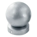 Stålhegnskasket med dekorativ kugle beregnet til afslutning af stolper af rundt rør med diameter fi 48 mm. Den dekorative kugle med diameter fi 60 mm giver hegnet et æstetisk, gennemarbejdet udseende og beskytter samtidig effektivt rørets indre mod indtrængende regnvand, snavs og fugt — hvilket betydeligt forlænger hele hegnkonstruktionens levetid.