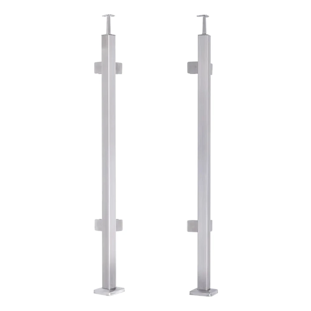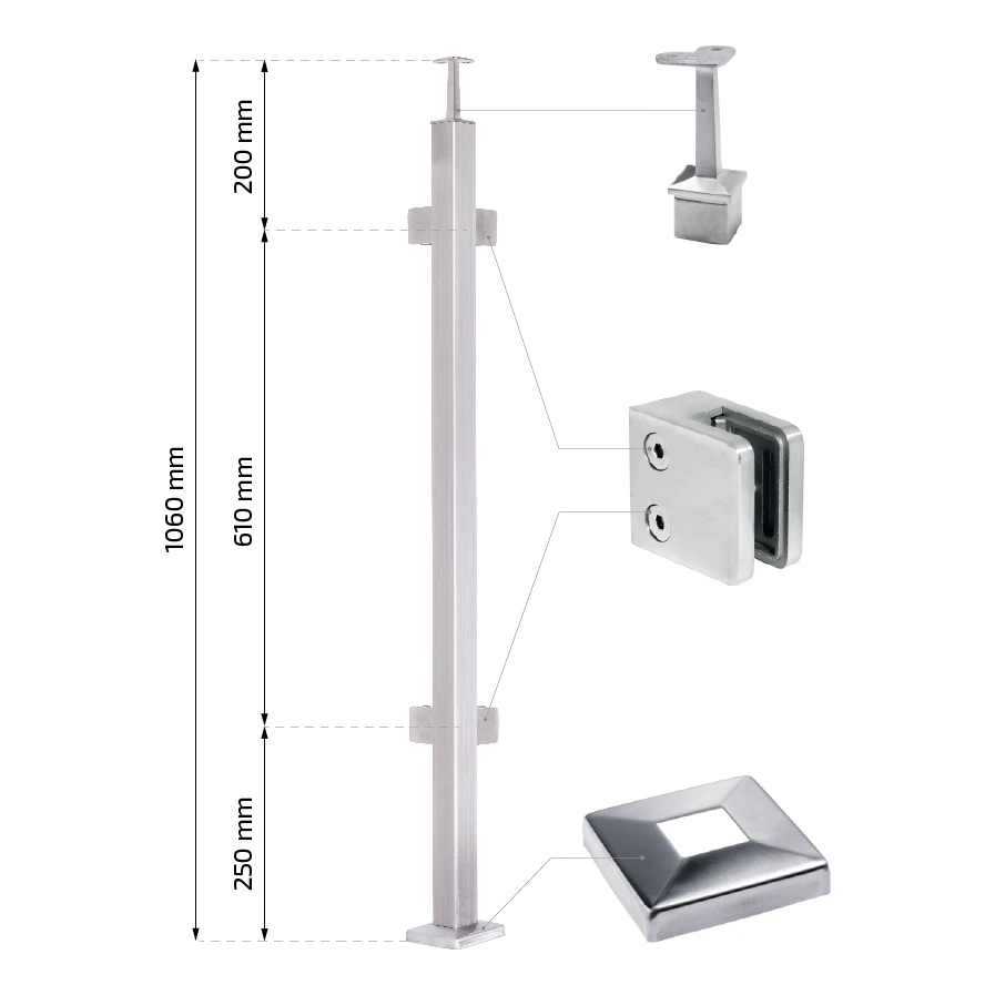 Hjørne gelænderstolpe rustfrit stål 40×40×1060 mm – 4 glasbeslag