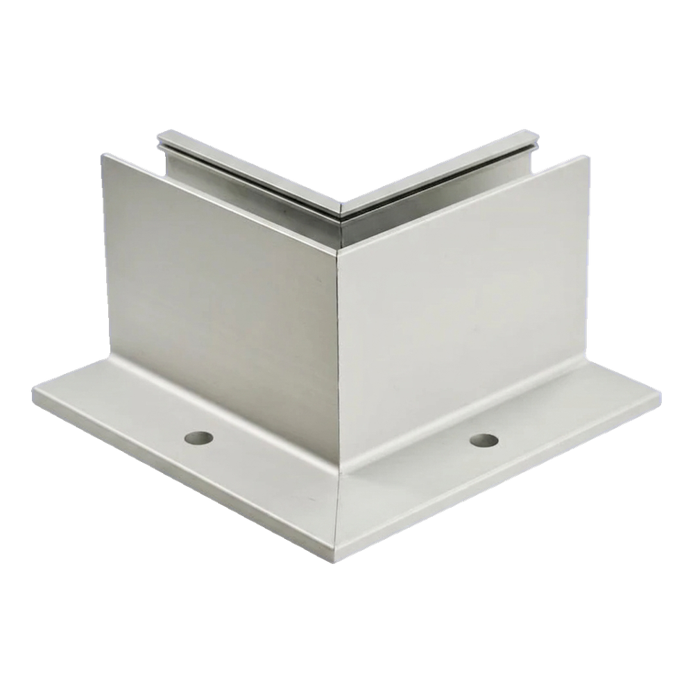 Indvendigt L-hjørneprofil i aluminium til heldækkende glasbalustrade 230×120×95 mm