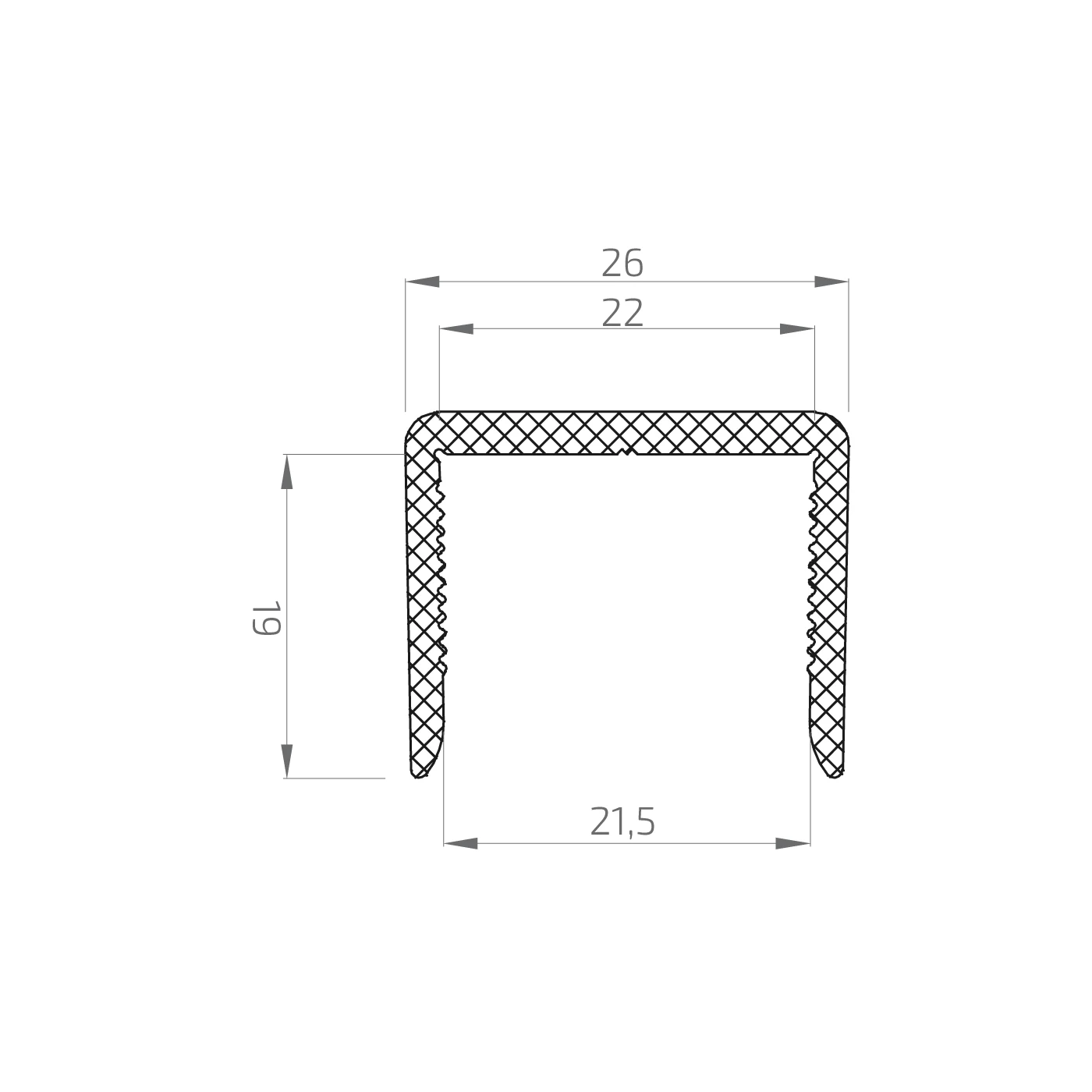 - Indre bredde (top): 22 mm