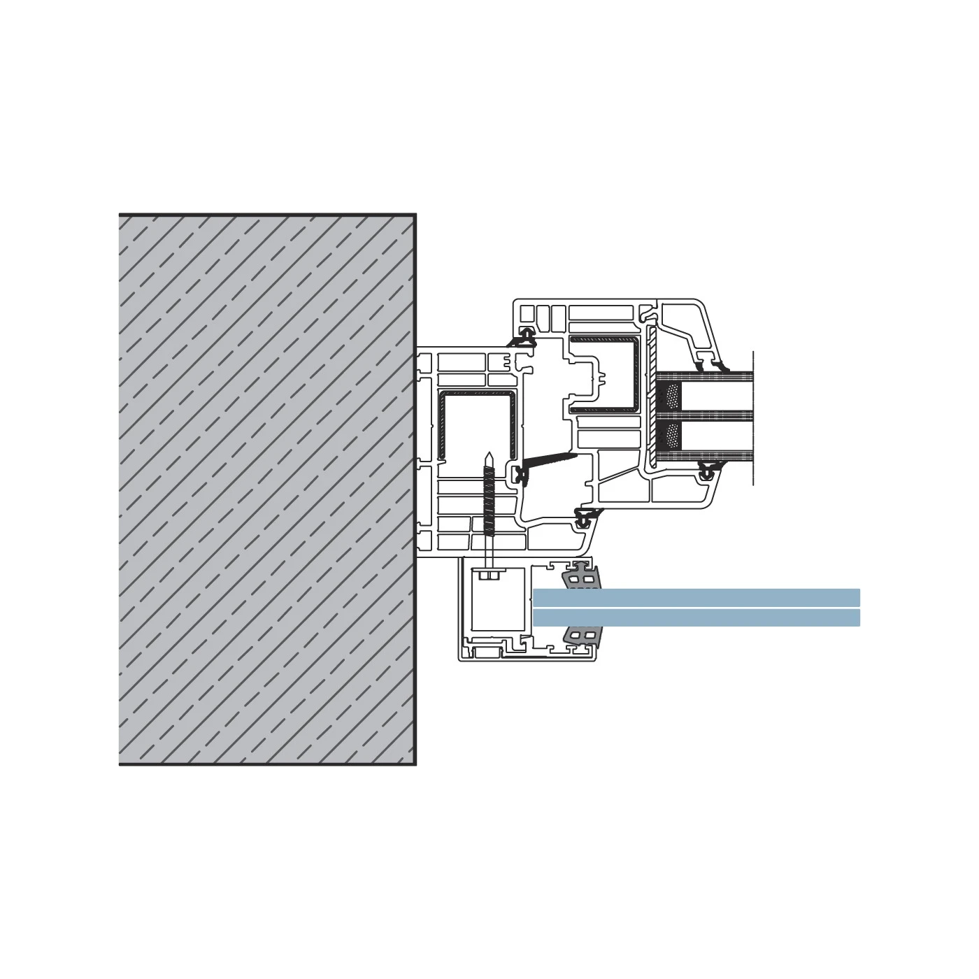 - Nederste afstand (profil–glas): 8,5 mm