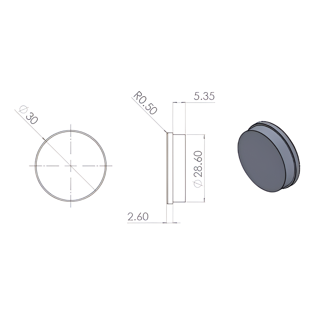Kozza aluminium slutprop til monteringshuller i L-type heldglasgelænder profiler fra KE 105 serien. Sikrer æstetisk finish af profilen efter endt montering ved effektivt at dække teknologiske huller. Takket være den enkle tryk-på konstruktion tager monteringen kun et øjeblik — det er nok at trykke slutproppen på plads med fingeren, uden brug af ekstra værktøj eller lim.