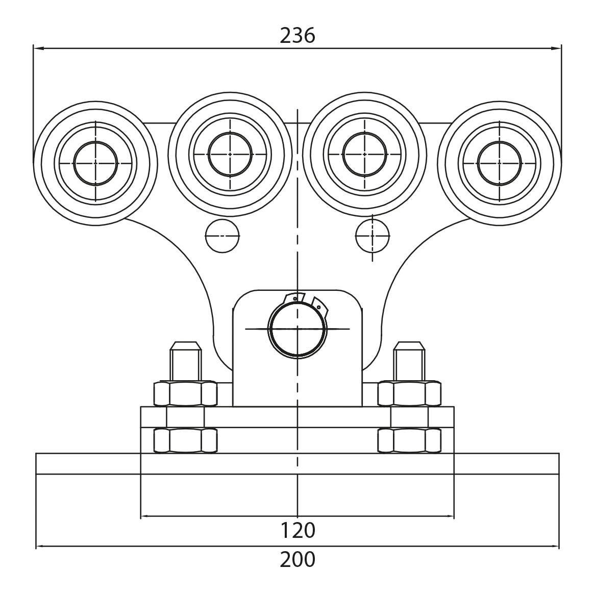 Løbevogn 68 til skydeport – 8 stålruller, system 68×68