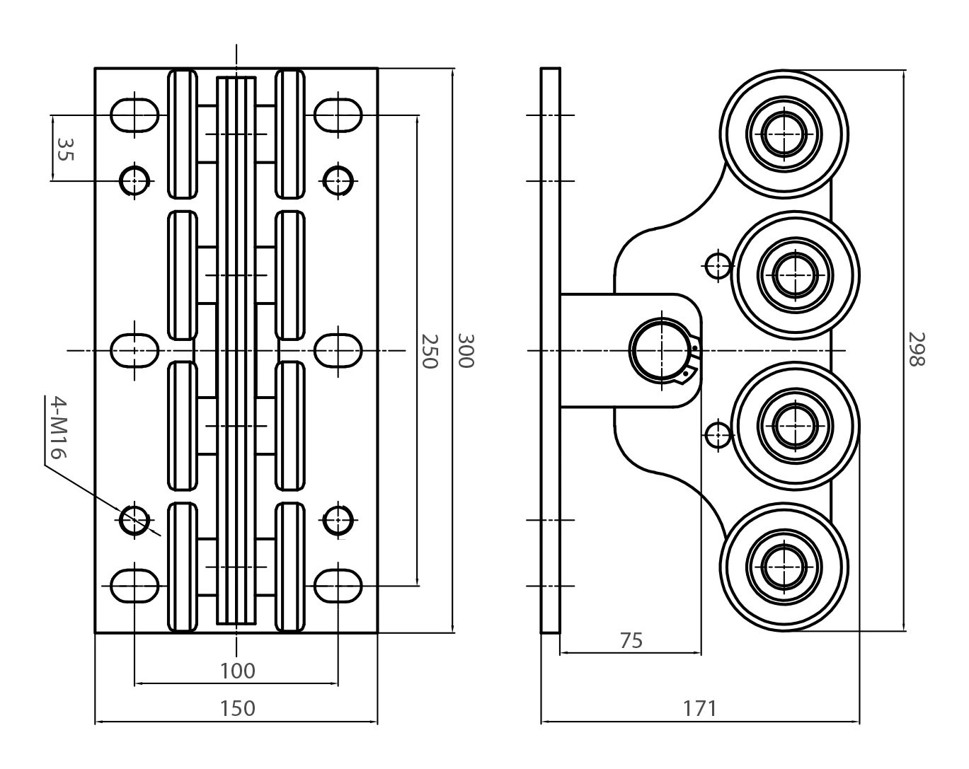 - Monteringsplade med huller: 4× M16