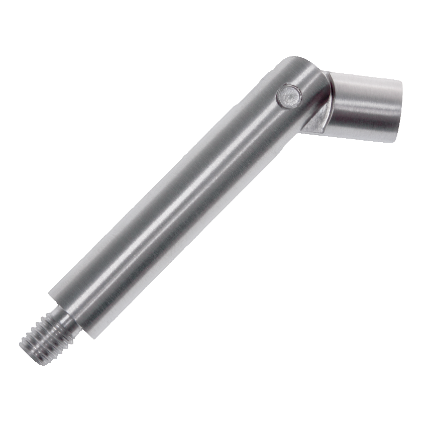 Ledhylden er beregnet til montering af gelænder på supportere i gelændersystemer af rustfrit stål. Det udvendige gevind M8 skrues i supporten, og det indvendige gevind M6 modtager skruen, der fastgør gelænderet. Takket være den ledede konstruktion kompenserer elementet for forskelle i hældningsvinkler — særligt nyttigt ved trapper og ramper, hvor gelænderets hældning ændrer sig på lige strækninger og i sving.