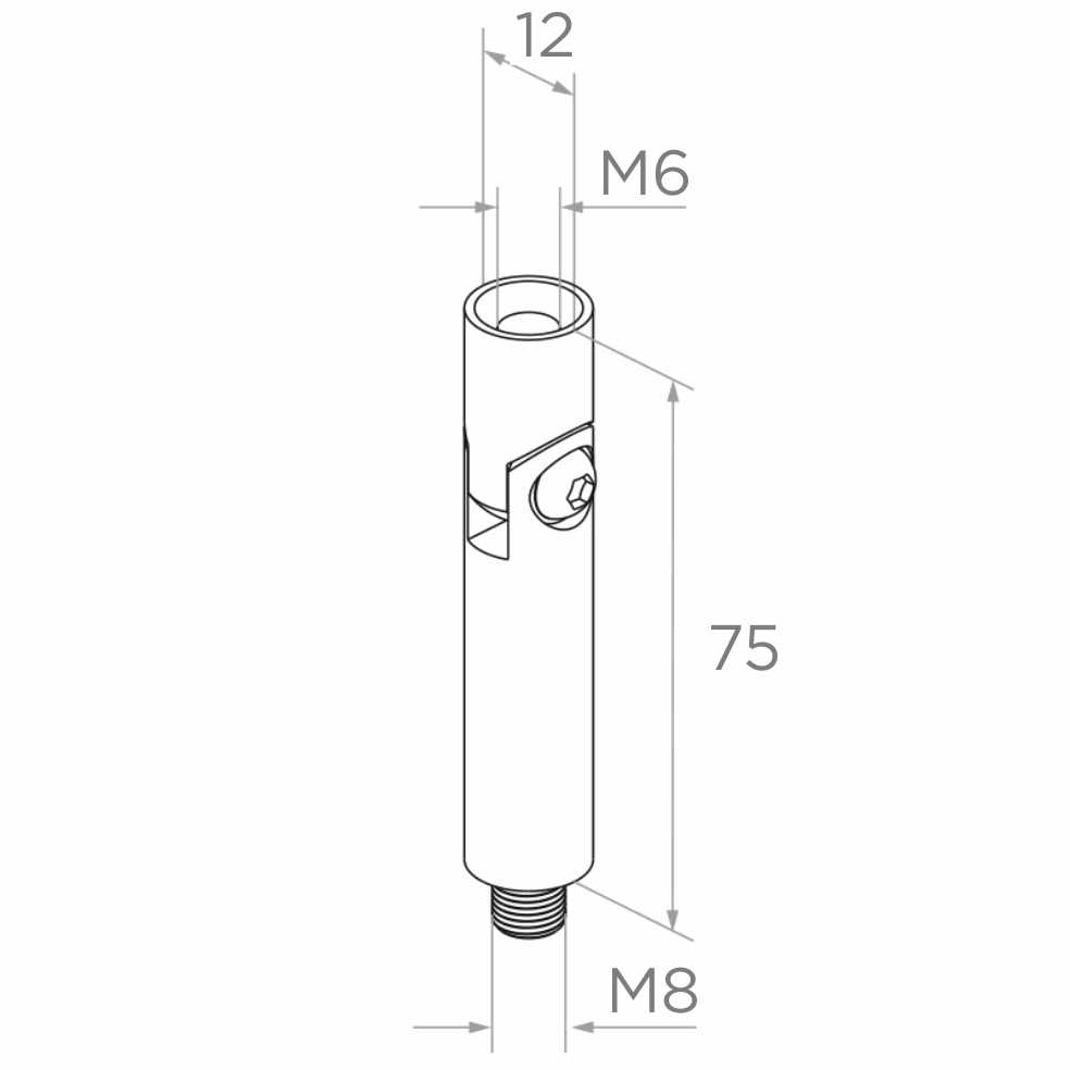 Ledhylde til gelænder-support fi 12 × 75 mm – rustfrit stål AISI 304, satineret