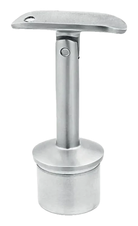 Leddet gelænderstøtte til balustresystem 42,4 mm, beregnet til indsætning i stolpen med anaerobt lim. Den leddede konstruktion muliggør trinløs justering af vinklen på gelænderet, hvilket gør montagen af trappegelændere betydeligt lettere og eliminerer behovet for at tilskære elementer i individuelle vinkler.