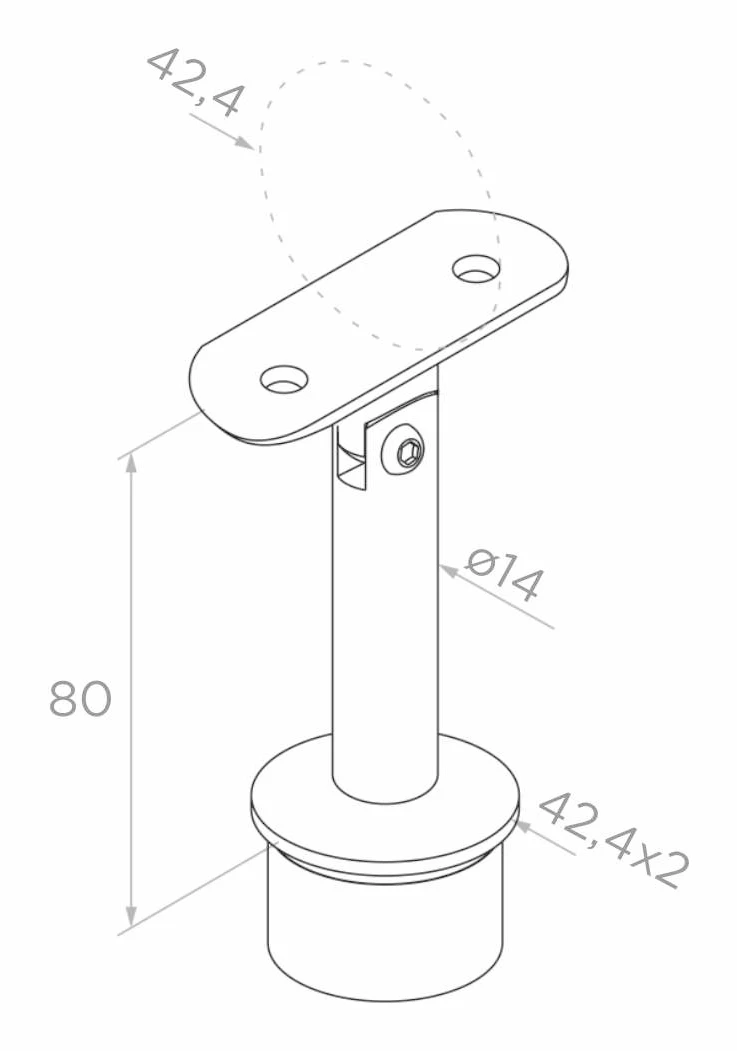 Gelænderstøtte 42,4 mm leddet klæbet – rustfrit stål AISI 304 satin