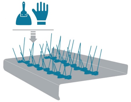 - Klæbemidlet er designet til at binde polykarbonatbaserne af anti-fuglepiggene. Når den er hærdet, er den lugtfri og permanent fleksibel og klæber perfekt til forskellige overflader såsom beton, metal, polyester, plast osv. Et rør lim er nok til at installere ca. 12 løbende meter fuglepigge.