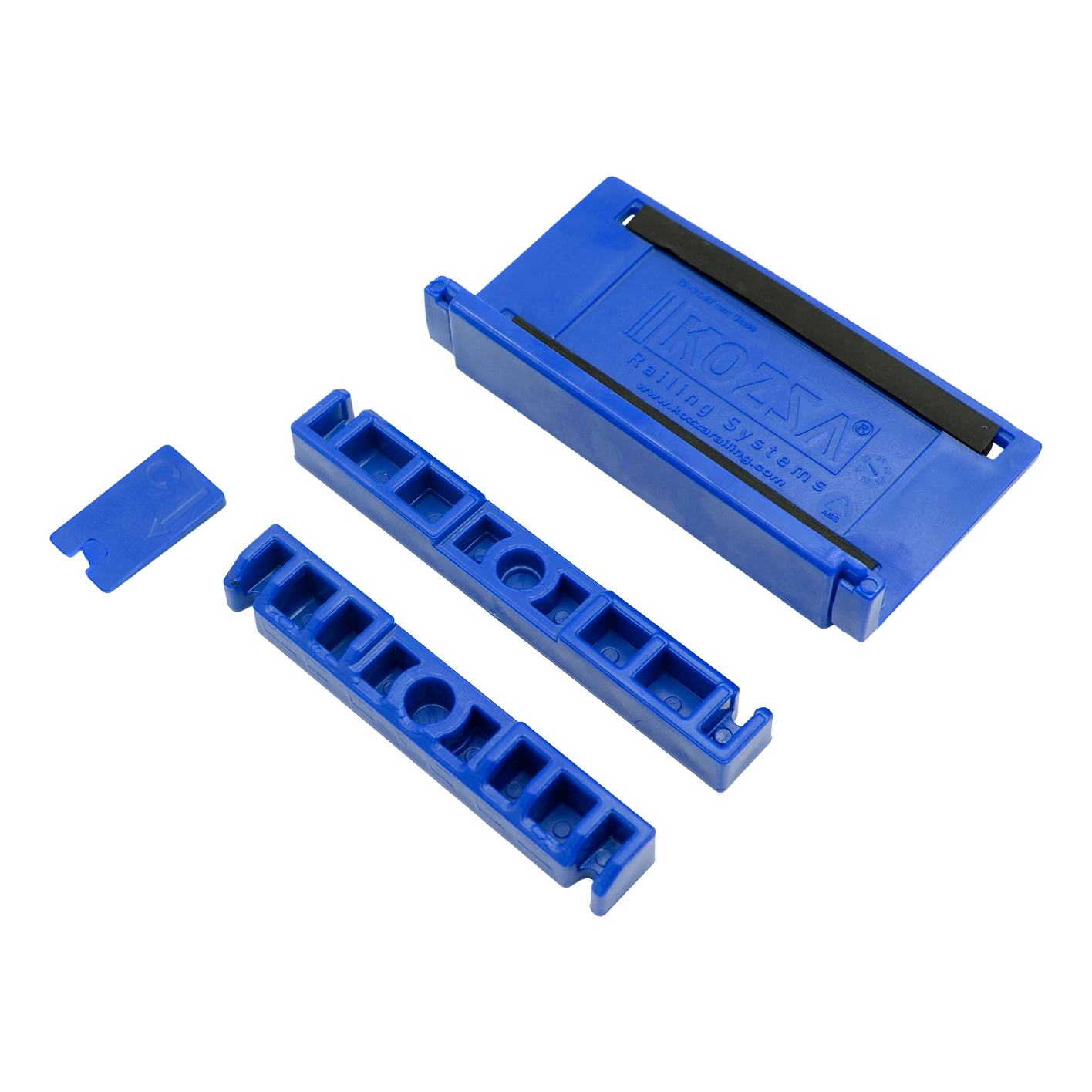 Monteringssættet Glassmove fra KOZZA Railing Systems er et komplet sæt komponenter til professionel montering af glaspaneler i aluminiumsprofiler af typen KF U, L og Y. Sættet er beregnet til profiler med en længde på 5000 mm og understøtter glas med en tykkelse fra 16 til 17,52 mm — det gør det ideelt til montering af glasrækværk, glaspartitioner samt konstruktioner i hærdet og lamineret glas.