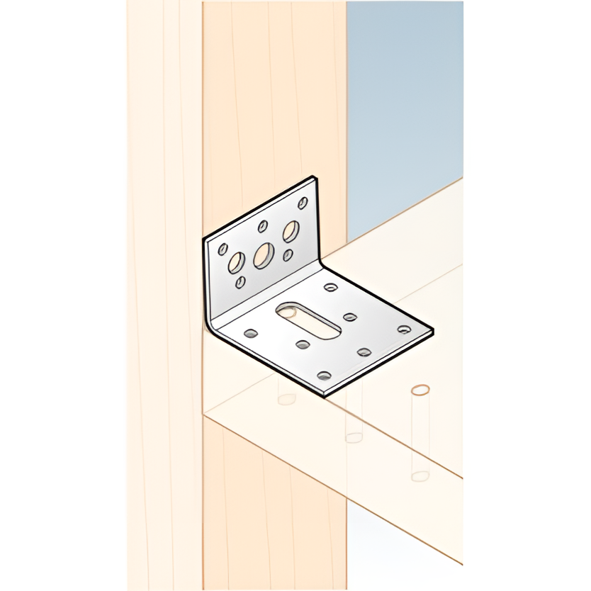 Justerbar monteringsvinkel 60×40×60×2,5 mm er en robust vinkelbeslag beregnet til professionelle samlinger i trækonstruktioner. Takket være langhuller (nyreformede huller) muliggør den præcis justering af positionen på de sammenføjede elementer, hvilket væsentligt letter monteringen af bjælker med rektangulært eller kvadratisk tværsnit og eliminerer dilationsbelastninger som følge af ændringer i træets fugtindhold.