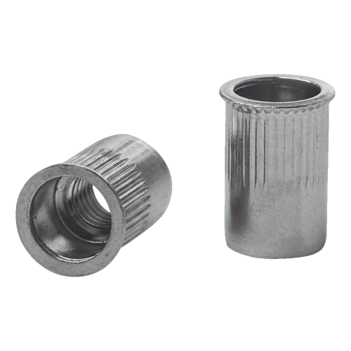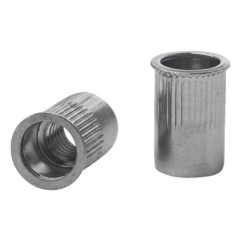 Gennemgående nittemøtrik M8 A2 – konisk reduceret flange, rillet, AISI 304