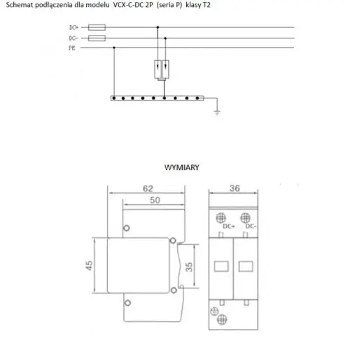 Udstyret med en statusindikator, der viser aktiv beskyttelse med grøn farve og manglende beskyttelse med rød farve. Takket være den indbyggede termiske sikring kræver den ikke yderligere termiske beskyttelsesforanstaltninger, selvom deres anvendelse anbefales. Overspændingsbeskytteren type VCX DC C 3P 1000 V er velegnet til brug i PV-systemer.