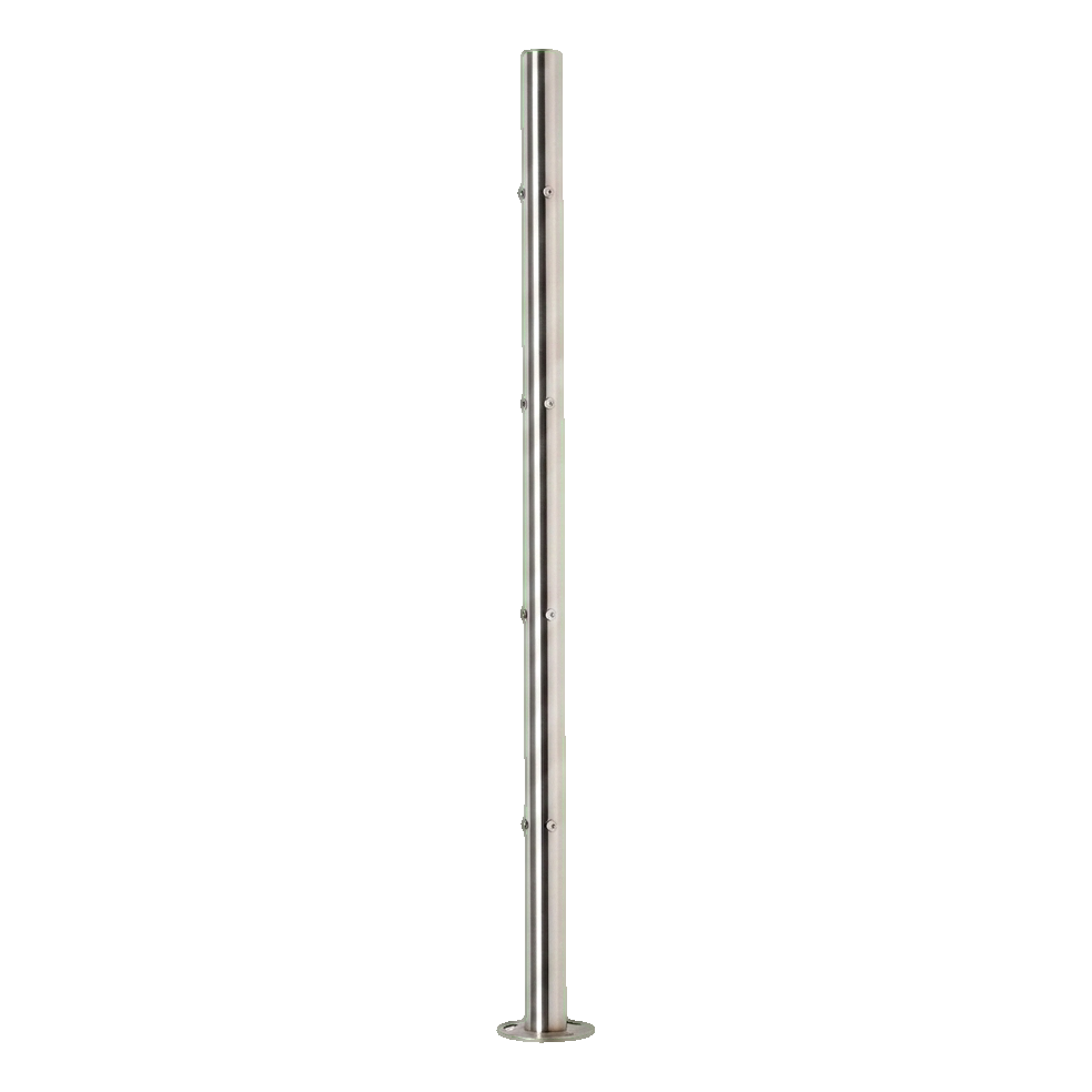 Rustfrit stål AISI 304 garanterer høj korrosionsbestandighed under standard miljøforhold, hvilket gør denne stolpe velegnet til både indendørs anvendelse og i begrænset omfang — udendørs (væk fra havmiljø og stærkt kemisk aggressive omgivelser).