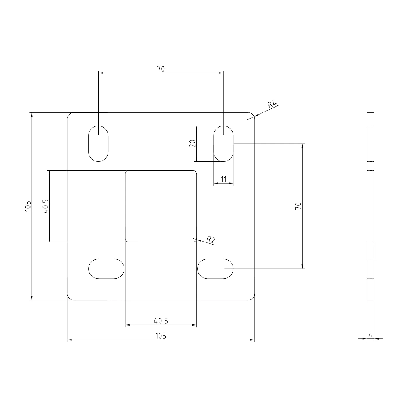 - Bundplade: 105×105×4 mm