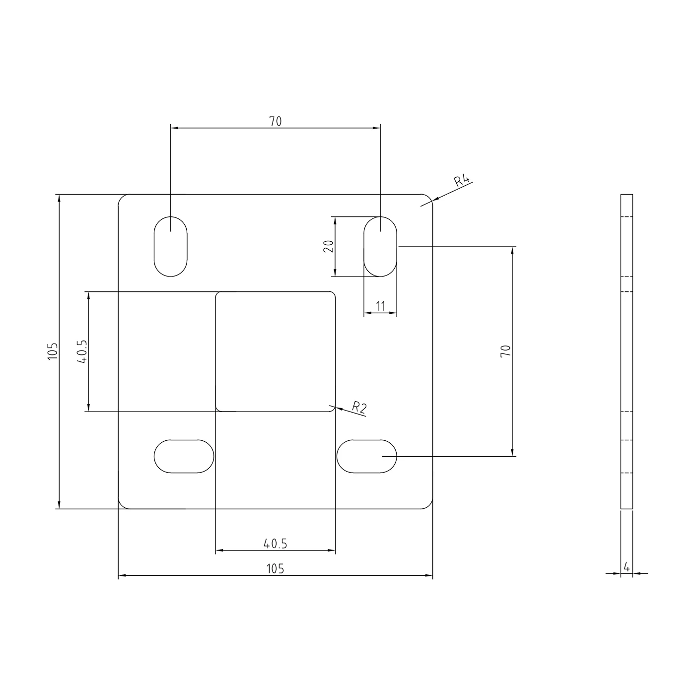 - Afrundingsradius ydre hjørner: R4
