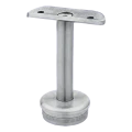 Supporten monteres ved at slå den rillede base ind i balustrade stolperørets indre. Rillingen på basens omkreds sikrer holdbar og stabil fastsættelse i røret uden behov for yderligere fastgørelseselementer. Sædet på toppen er udstyret med monteringshuller, der gør det muligt at skrue håndgrebet fast. Løsningen er beregnet til retlinjede balustrade sektioner — i tilfælde af balkonbalustrader med behov for justering af håndgrebets hældningsvinkel anbefales det at bruge leddelte støtter.
