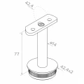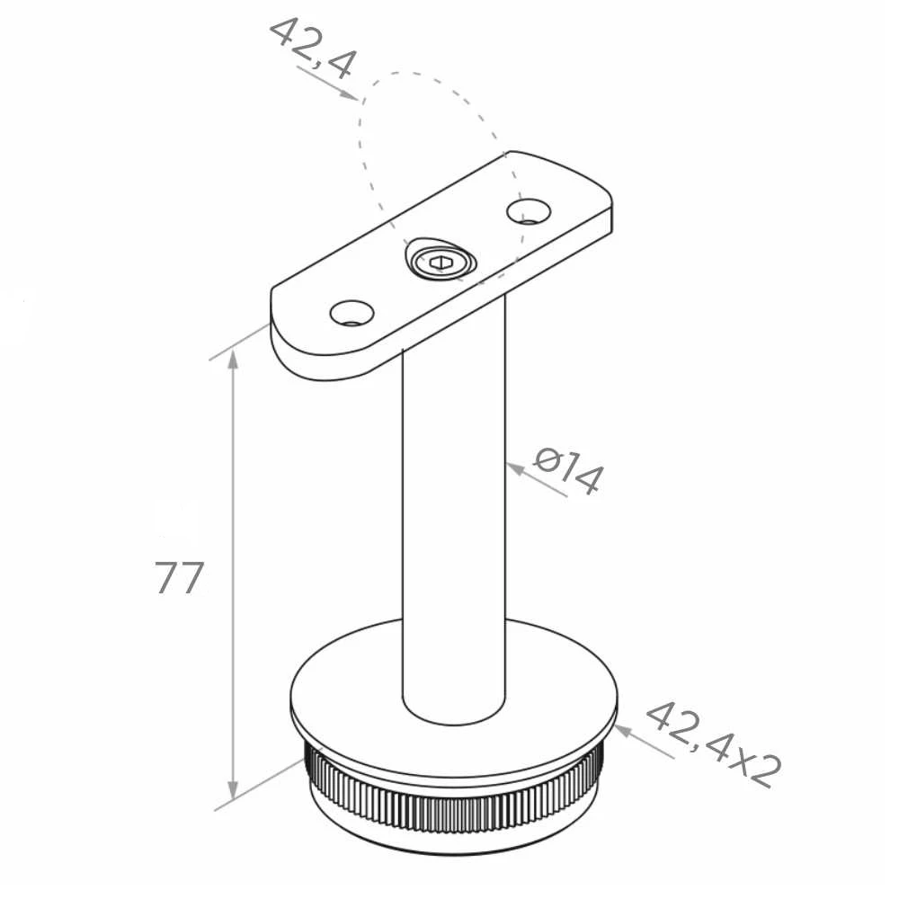 Supportens konstruktion er tilpasset balustrade systemet 42,4 mm. Den nederste del med rillet kant slås ind i stolperøret med dimensionerne 42,4 × 2 mm (ydre diameter × vægtykkelse), og det øverste sæde med profileret kurve tilpasser sig til håndgrebet med diameter 42,4 mm. Den lodrette tap med diameter ø14 mm sikrer passende stivhed af hele forbindelsen.