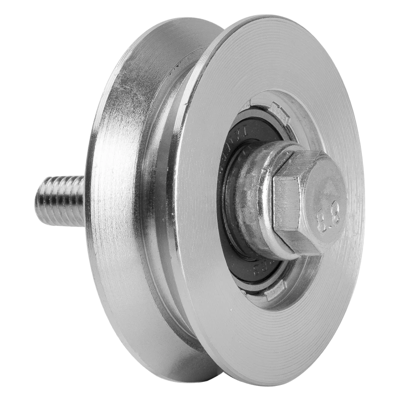 Rullen er beregnet til samarbejde med føringsskinner med V-profil — en standardløsning i skinnebaserede skydeporte. V-rilleprofilen sikrer stabil føring af porten på skinnen og minimerer sideafvigelser af fløjen under kørsel. Bæreevnen på 150 kg tillader anvendelse i porte med moderat vægt — både i installationer ved enfamiliehuse og i lette industriporte.