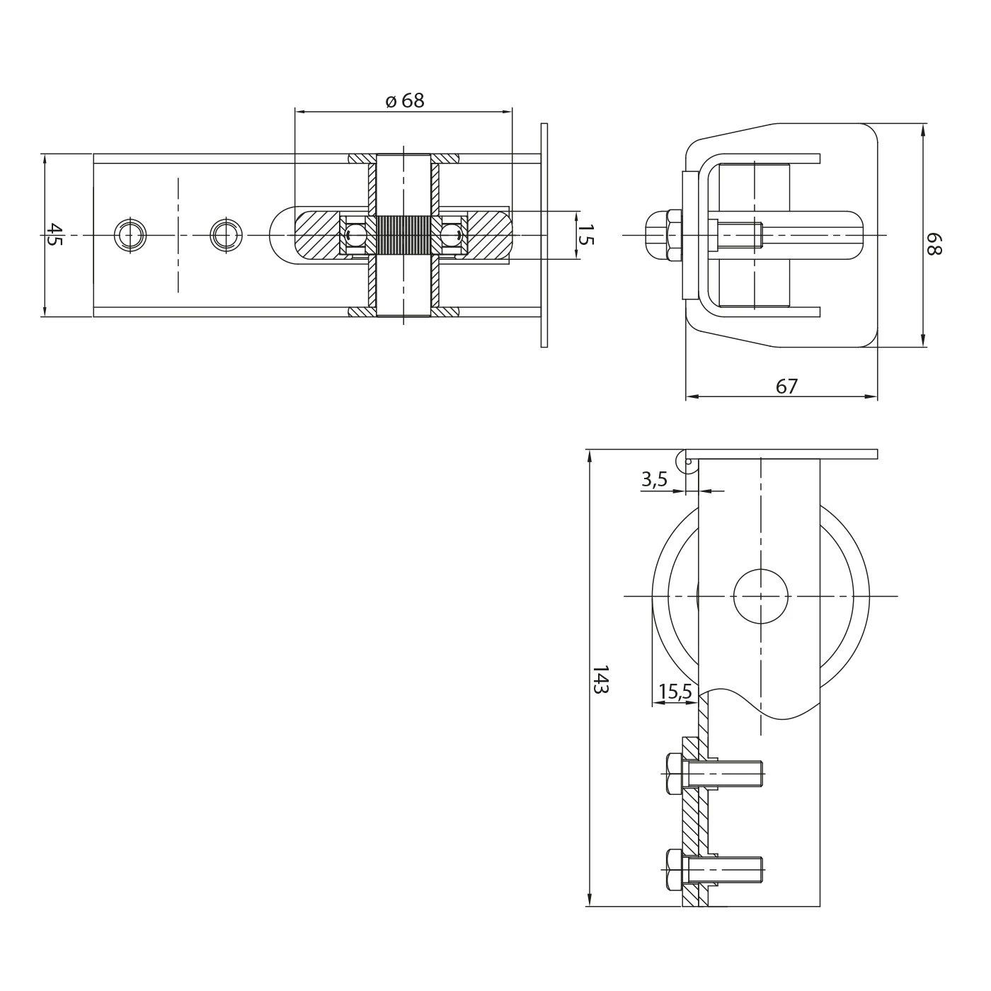 Rullen interagerer med påkørselsholder, hvilket muliggør glat og fejlfri lukning af bommen. Udførelse i galvaniseret stål garanterer høj modstandsdyighed mod korrosion og atmosfæriske påvirkninger — ideell løsning til udendørs installationer, der er udsat for regn, sne og skiftende temperaturer. I sættet medfølger monteringsskruer, hvilket gør hurtig montering og tilpasning til profilsystem 68×68 mm lettere.