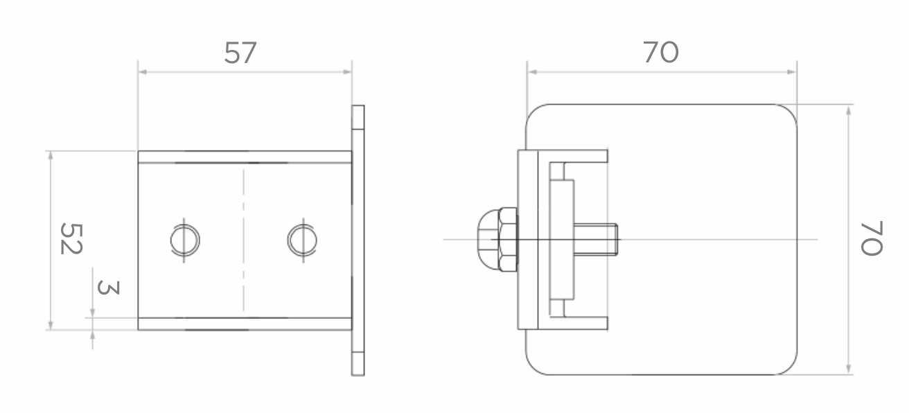 Elementet skubbes ind i åbningen på køreskinne profilet til en dybde på 57 mm og fastgøres ved hjælp af de medfølgende skruer. Konstruktionen sikrer en sikker, stabil forbindelse uden behov for svejsning. Afslutningen anvendes på begge ender af køreskinnen på den selvbærende skydende port — beskytter profilet og giver installationen et professionelt, færdigt udseende.