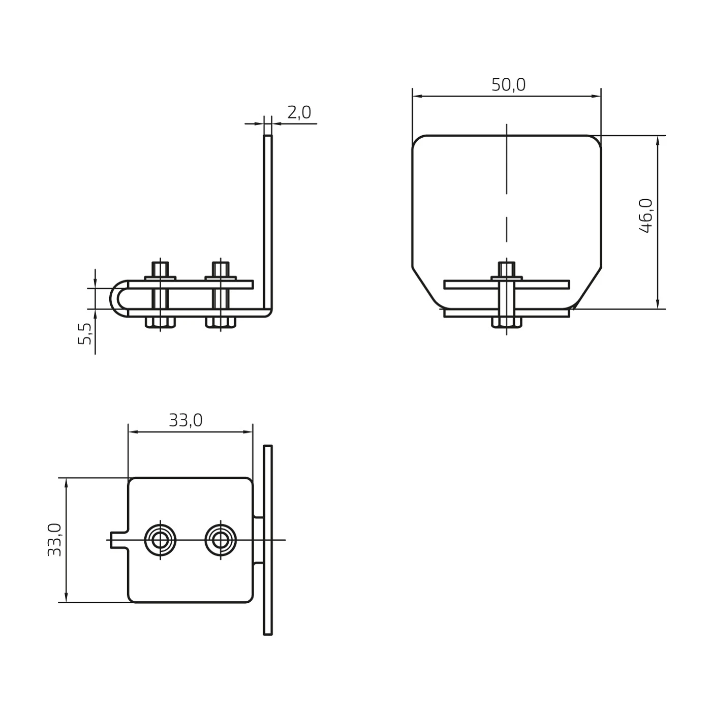- Kompatibilitet: løbeskinne med profil 50 × 46 × 2 mm