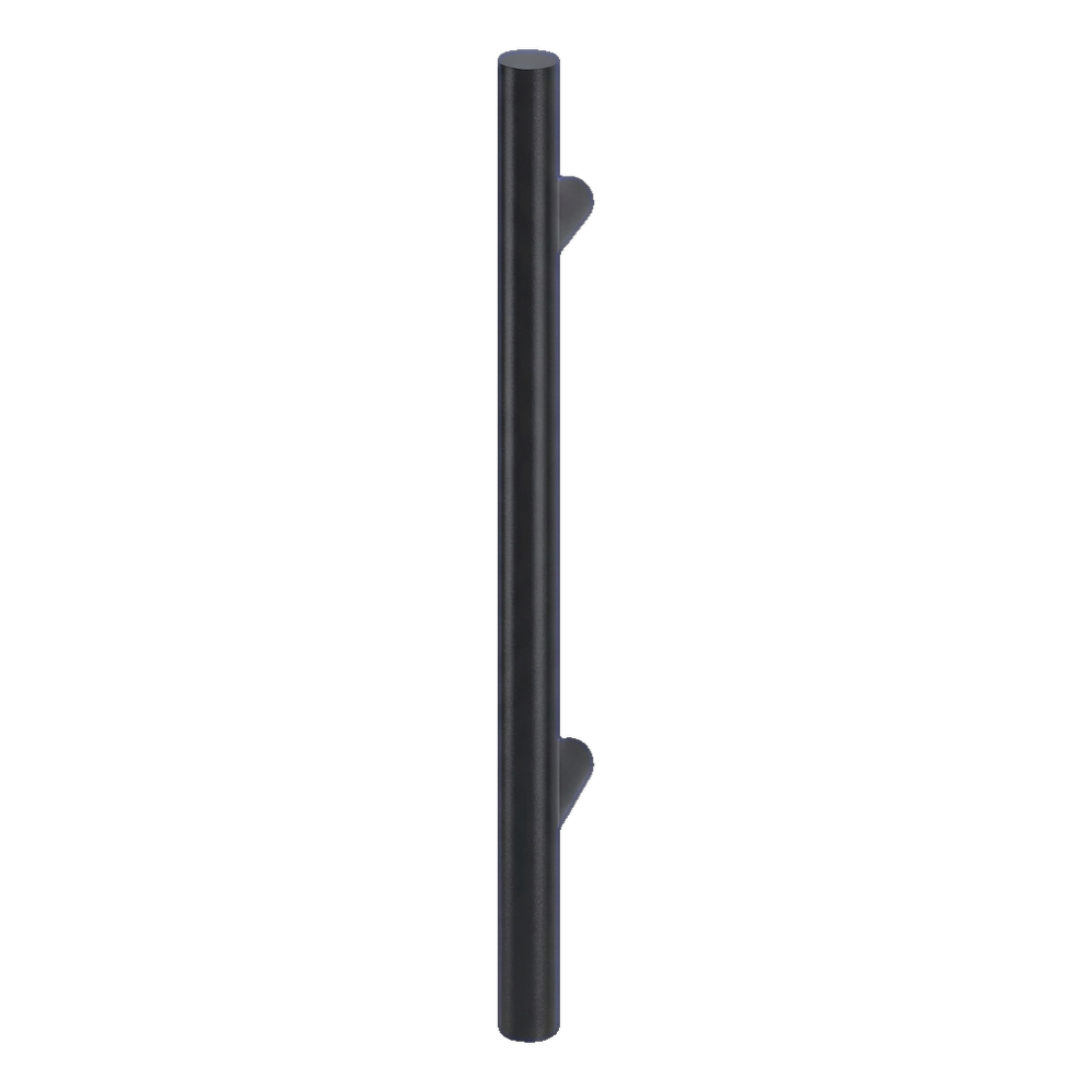 Enkeltsidet dørhåndtag med rundt profil og længde 500 mm, fremstillet af rustfrit stål AISI 304 i sort farve. Den minimalistiske, cylindriske form af håndtaget kombinerer elegant udseende med høj mekanisk styrke — egnet til både kommercielle objekter og boligbygninger.