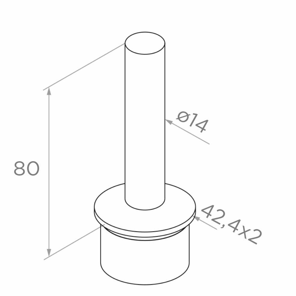Tap med diameter ø 14 mm og samlet højde 80 mm muliggør sikker fastsættelse af håndliste, og den kompakte base tilpasset rør 42,4 × 2 mm letter centrering og montering. Takket være satin finish harmonerer produktet smukt med andre elementer i rustfrie gelændersystemer.