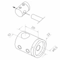 Beslagets korpus har form som en cylinder med et tværgående gennemgående hul til stangen. Monteringshullet i delens akse gør det muligt at skrue beslaget til en flad overflade (f.eks. stolpe, profil). Monteringsvisningen på den tekniske tegning viser den intuitive måde at indsætte stangen i beslaget.