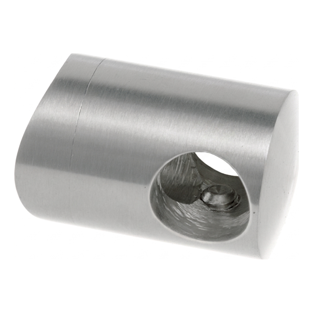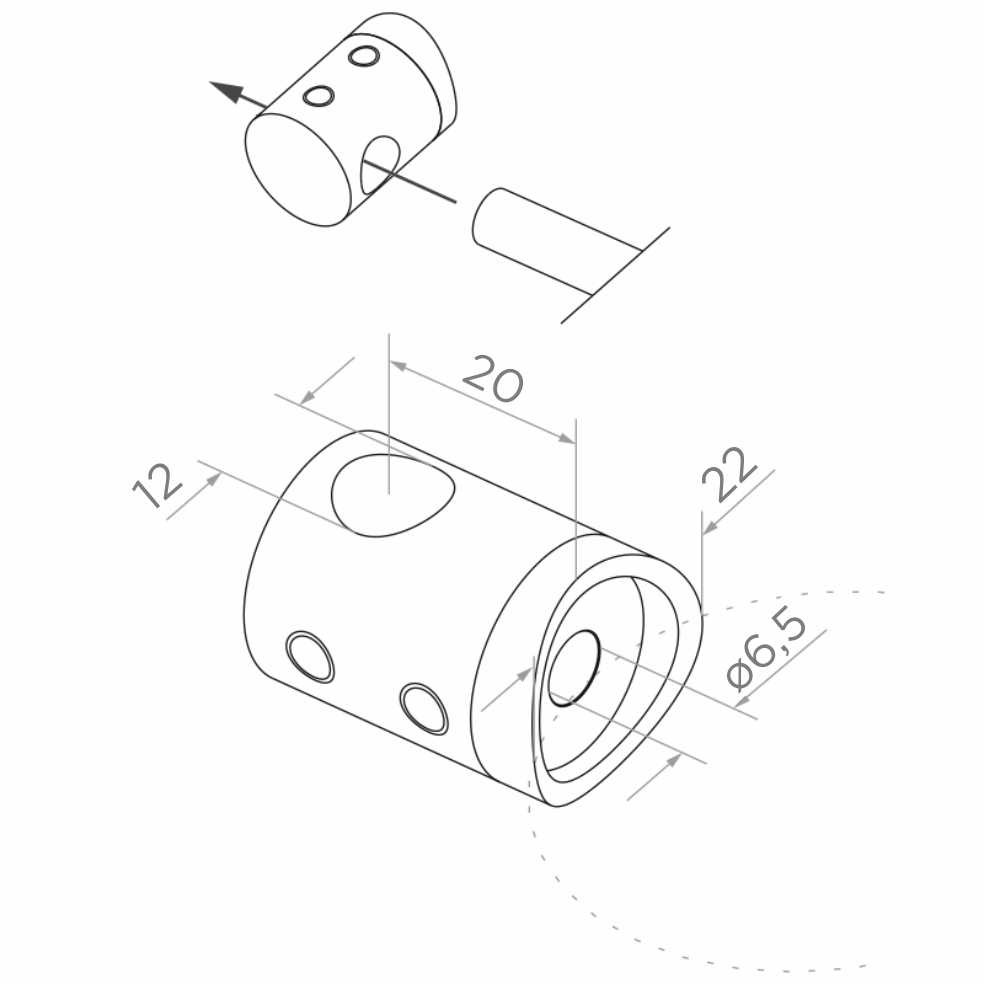 Kompakt, cylindrisk form med præcist freseget gennemgående hul letter monteringen og sikrer et æstetisk, minimalistisk udseende. Den indvendige klemmeskrue muliggør sikker fastgørelse af stangen uden behov for svejsning.