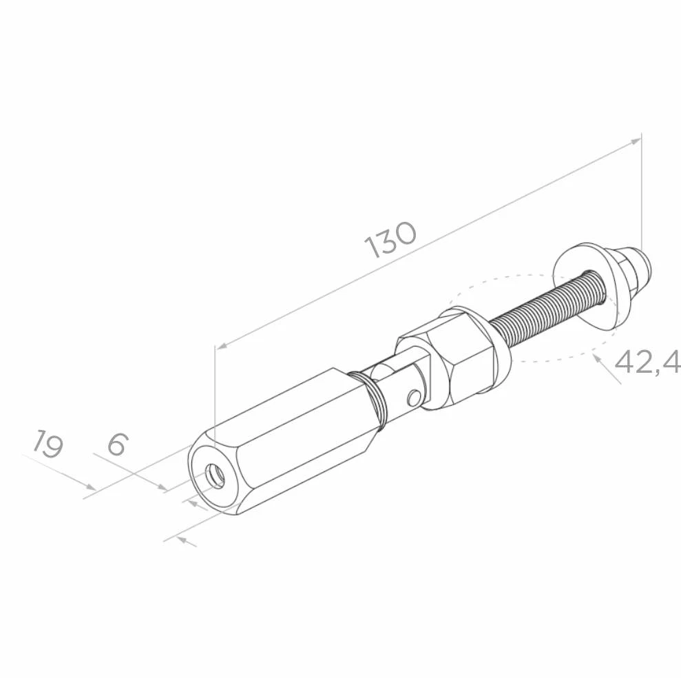 Fæstet fungerer som startelement for wire i gelænderudfyldningssystemet. Det samarbejder med gelænderstolper med diameter 42,4 mm — den mest populære standard i rustfrit stål gelændersystemer. Muligheden for montering til flade gør det til en universel løsning både i anvendelser med bærerør og i konfigurationer, hvor wiren fastgøres direkte til vægge, stolper eller konstruktionselementer.