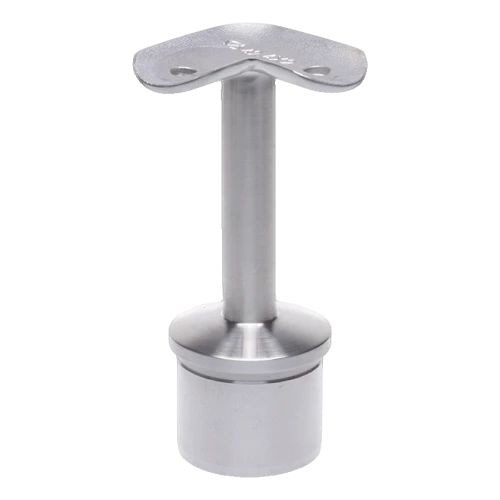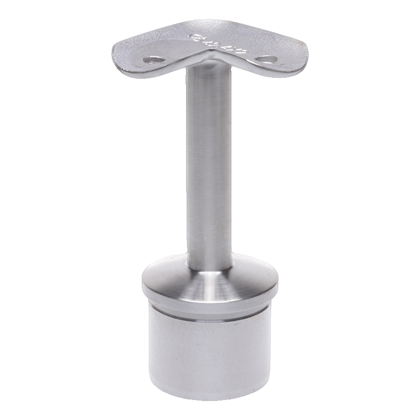 Støtten er fremstillet af rustfrit stål AISI 304 med satin finish, hvilket sikrer et æstetisk, mat udseende, der er modstandsdygtigt over for fingeraftryk og mindre ridser. Materialet garanterer høj korrosionsbestandighed — elementet er velegnet til både indendørs installationer og til anvendelser i beskyttede udendørs områder.