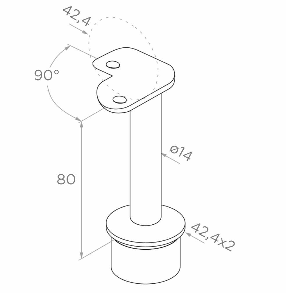 PSG hjørnehåndliste støtte 90° klebet – gelændersystem 42,4 mm, rustfrit stål satin