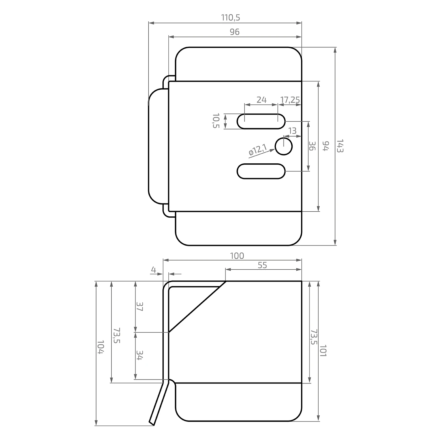 - Rundt hul: ø12,1 mm