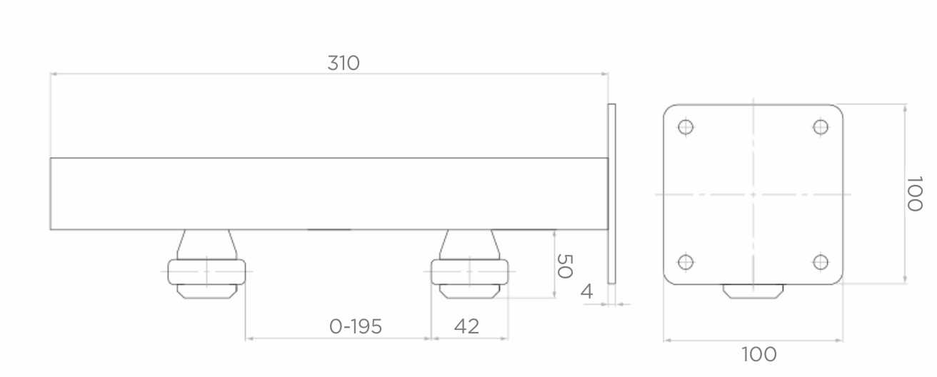 - Monteringsplade: 100 × 100 mm, tykkelse 4 mm